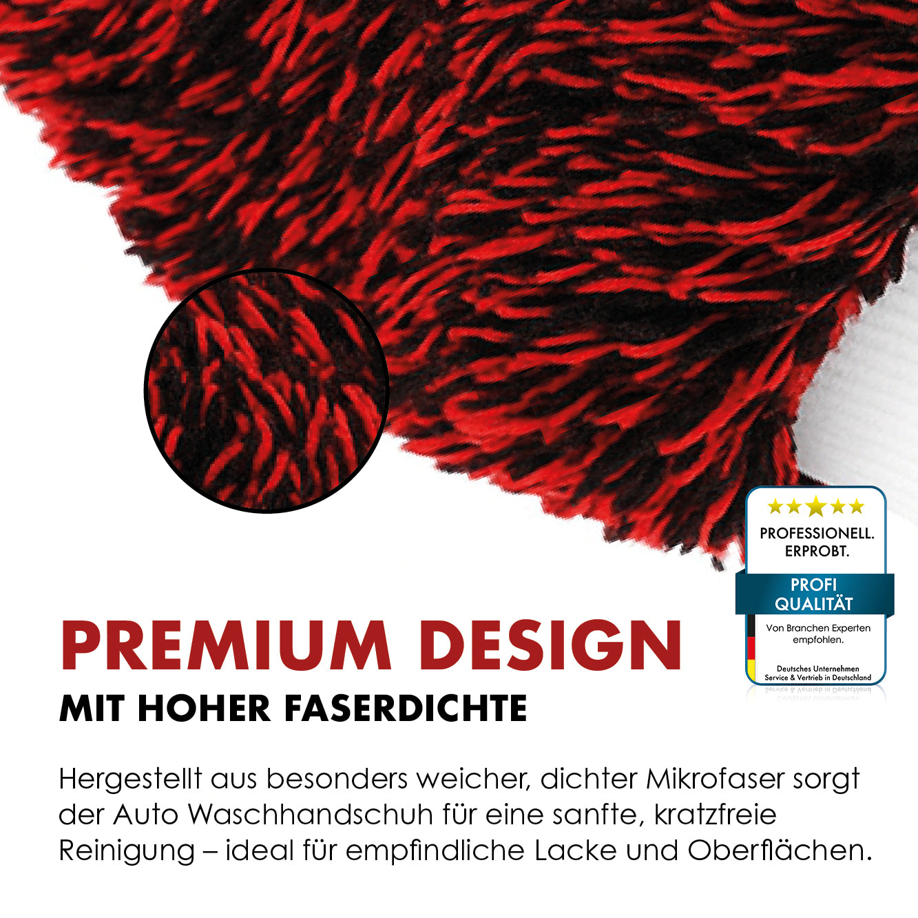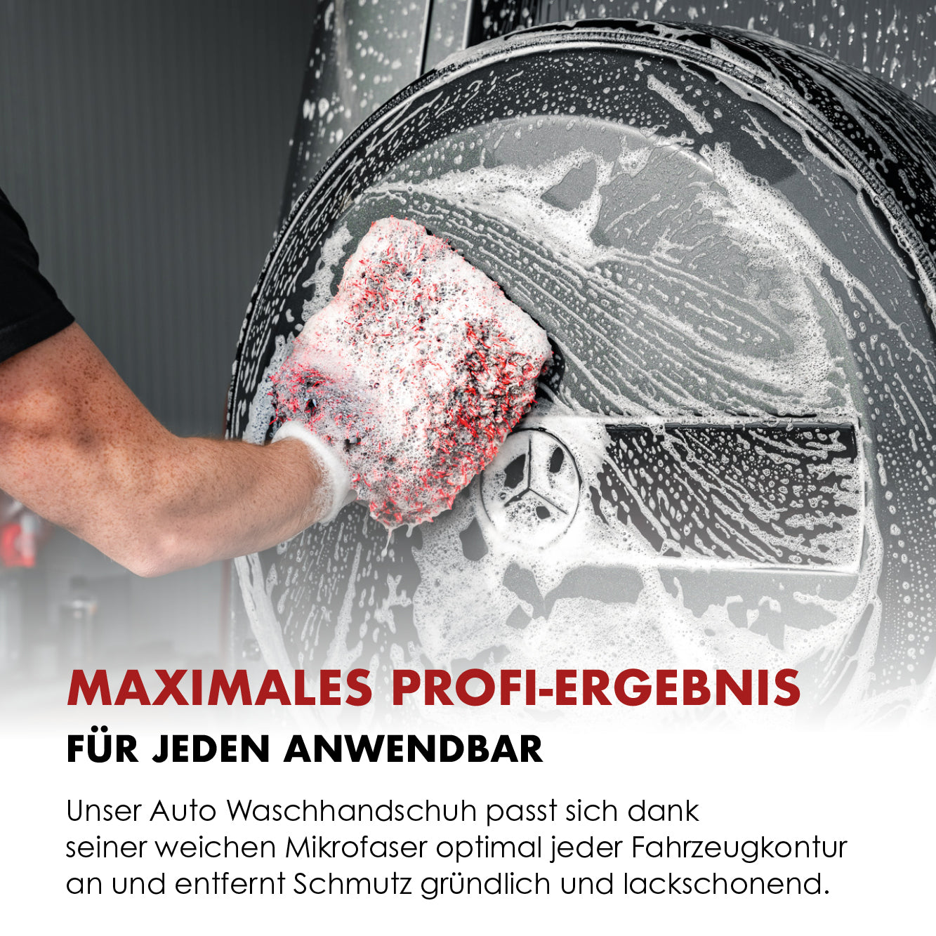 The car wash mitt impresses not only with its performance, but also with its high-quality black and red design . The elegant appearance reflects the high quality standards – perfect for those who value style and professional equipment.