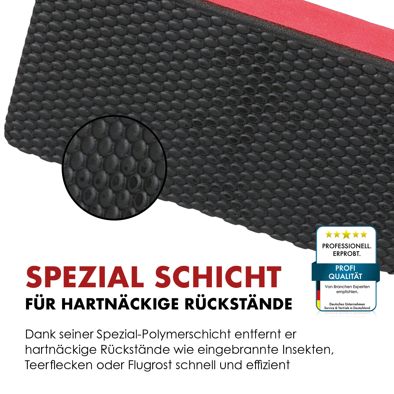 The Clay Sponge's integrated polymer coating removes even deep-seated dirt like rust , tar , or insect residue – without aggressive agents or high pressure. It glides smoothly over the surface, creating a noticeably smoother paint finish without scratches. Ideal for professionals who value efficiency and safety.